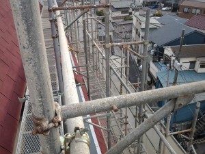 斜壁部分屋根足場工事